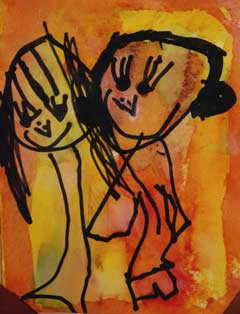 My Dad and Me 4" X 6 " Water Color and Black Marker on paper Created at age 4 for Fathers' Day